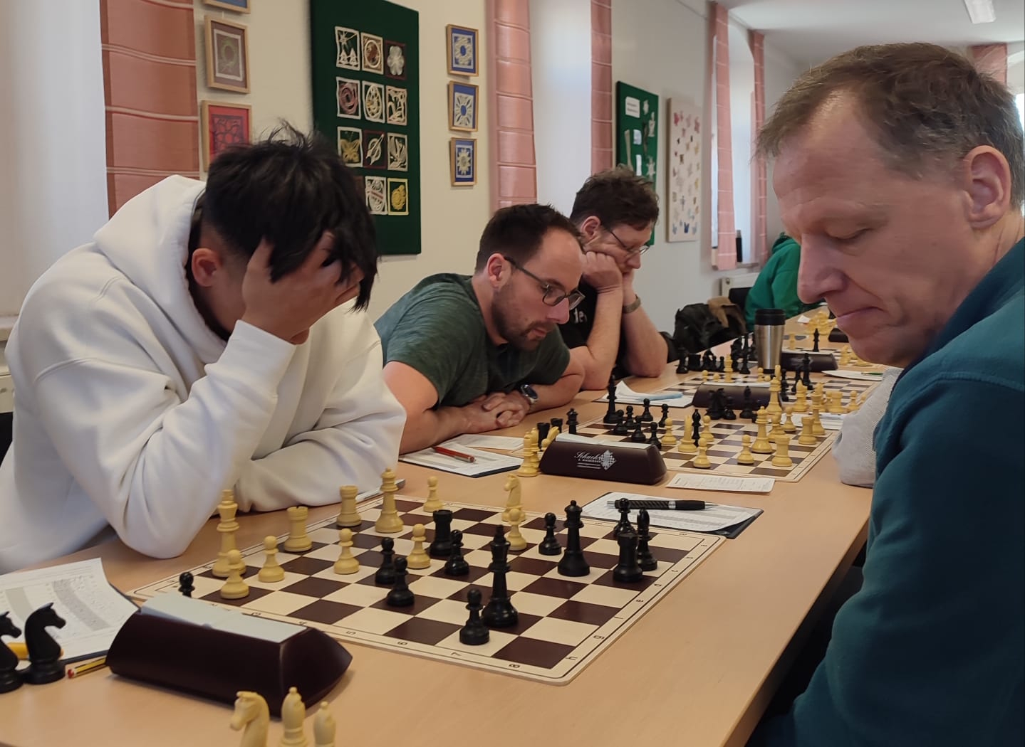 Obwohl unsere Aufgabe im Vorfeld diesmal schwerer erschien als im letzten Spiel, folgte dem dunklem Schatten des vergangenen Spieltages das glänzende Licht. Den hinteren fünf Bretter gelang es durch starke Leistungen aller unserer Spieler relativ schnell einen klaren vier Punktevorsprung herauszuspielen. Die vorderen drei Spitzenbretter konnten dann den Vorsprung weiter ausbauen. Dieses stolze Resultat erzielten Hieu Nguyen (0.5), Sören Klemp (0.5), Kersten Schönfeld (1.0), Sven Rotzoll (0.5), dazu kamen die zuvor vier errungenen Siege von Lutz Spreer, Harald Adam, Lukas Richter und Domenic Eulitz. Begünstigt durch weitere Schützenhilfe konnten wir auf den vierten Platz in der Tabelle klettern.